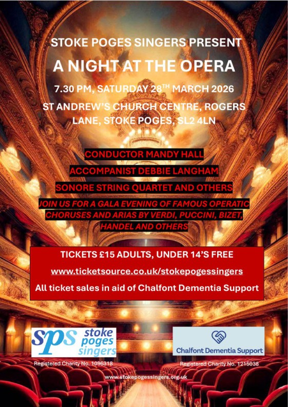 "A Night At The Opera" on Saturday 28th March, where we will be singing famous operatic choruses and arias by Verdi, Puccini, Bizet, Handel and others.