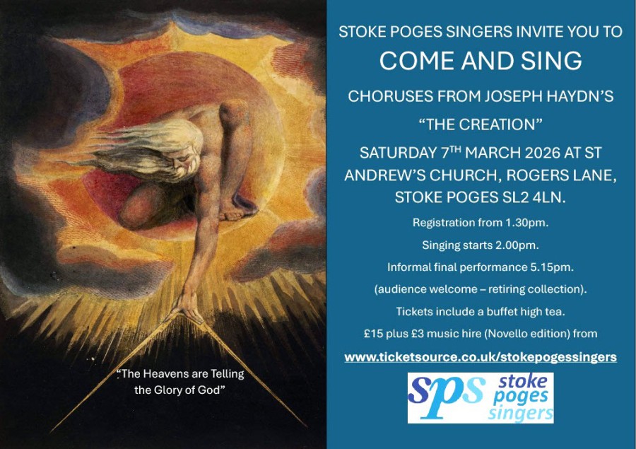 Please see poster below for details of the "Come & Sing" event where we will be singing choruses from Haydn's "The Creation".